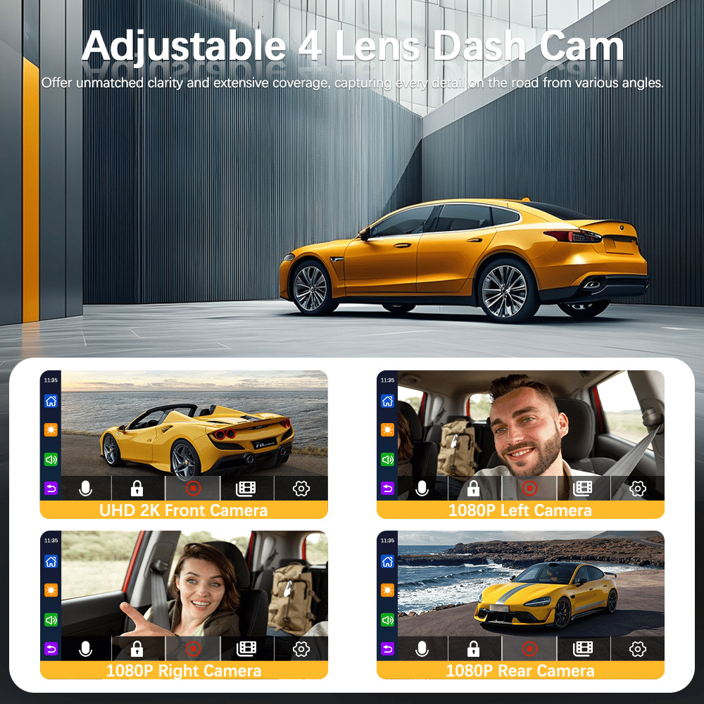 Dash Cam V8PLUS is a 4-channel dash camera equipped with ultra-wide-angle lens 150°*4 field of view, 4 channels can be rotated and adjusted angles, ensuring 360° full protection. Dash cam simultaneously monitors the front, interior, and rear of the vehicle, 2 video recording modes are available for you to choose resolution according to your needs